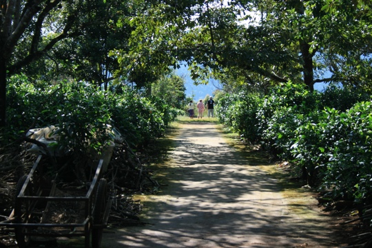 We started off with a visit to a coffee/tea plantation where I learned that all tea (well black, white and green) actually comes from the same plant and it just depends on the leaf and how it’s processed. Well I never 🙂 We also saw the various stages that coffee goes through from the red berries on the trees, to extraction of the seed then washing and drying before finally being roasted. Oh and we caught site of a couple more giant creepycrawlies, one of which our guide chose, I said CHOSE, to take off it’s web and put on himself, who does that??? The picture below is not for the fainthearted. I’m getting the heebie-jeebies just thinking about it.