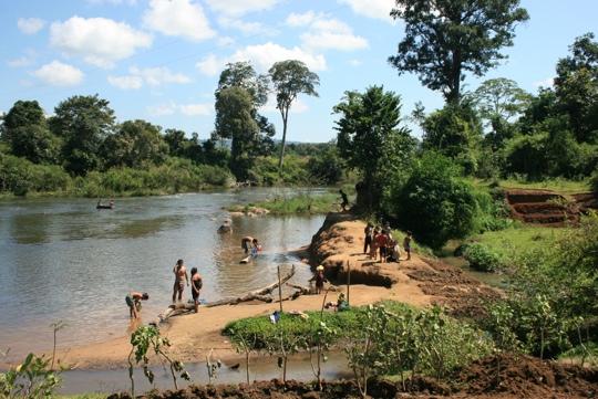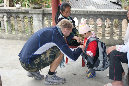 We had arrived two days before after traveling north on the overnight bus from Luang Prabang to Huay Xai, a slightly non-descript featureless town situated on the border with Thailand serving mainly as a through-point for a steady stream of travelers. From here we had taken a 2hr journey north before turning off the road on to a jungle mud-track that carved itself, twisting and lolloping through the mass of vegetation around us. An hour and a half later, we arrived in a tiny rural village, surrounded by rice paddies filled with diligent workers stooped and industrious in the fields. This was where we disembarked from our 4×4 pick-up vehicles and briefly spoke with a group waiting to be transferred back to town. They looked tired and weary but in good spirits and gleefully warned us about the leeches – they get everywhere they said, they are small and will worm their way through shoes and socks to get at your flesh.