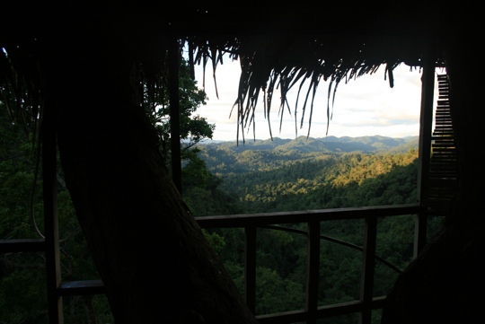 We were woken by our guide at 5am with the cheery Laos greeting of Sabaidee (hello), and there was a damp chill in the air as the jungle around us clung to the moisture generated by the dense lush vegetation. All was wonderfully still and quiet as we slowly forced ourselves into action rubbing bleary eyes into focus – you never sleep well in the jungle, a combination of unfeasibly boisterous insect noise, mind-fears of creepies in your bed and a hard so-called mattress. It felt like the dead of night as the blackness around us belied the fact it was technically morning in our Tarzan-esque treehouse located 150ft up in the jungle canopy perched on a hillside in the magnificent Bokeo National Park. Yes that’s right 150ft feet up.