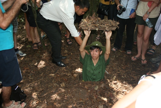 The tunnels were definitely less harrowing and focused more on the ingenious nature of this resistance by people who were basically peasants used to working on the land. Again we had to take everything with a pinch of salt as the tone of the video that we watched, anything that we read and the spiel of our tour guide was incredibly anti-US and pro-Vietnam but you can’t fail to be impressed by the achievement of a relatively small group of peasants who built a network that comprises an incredible 200km plus of tunnels that are at 3 different levels, 3m, 6m and 12m deep.