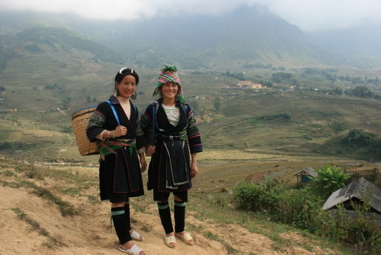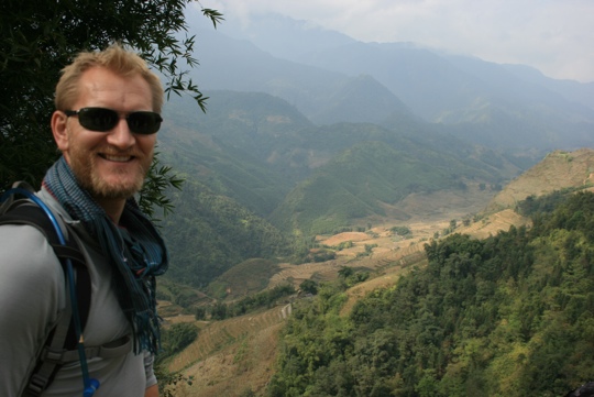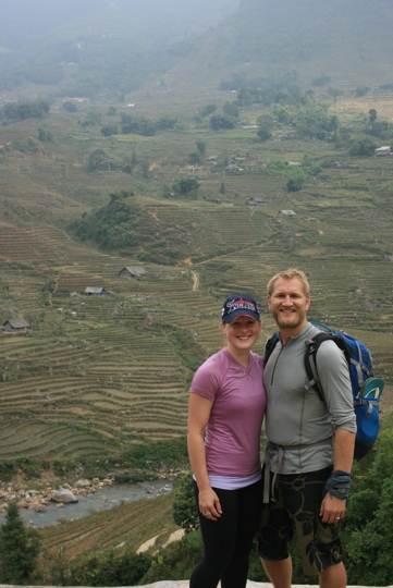 The town of Sapa lies at an altitude of 1600m and is part of the Hoang Lien Son range of mountains that forms the eastern extremity of the Himalayas. The range includes Vietnam’s highest mountain, Fan Si Pan, at a height of 3142m above sea level. The scenery was nothing like we’ve seen so far in Asia – instead of being deep in jungle we were on the side of a mountain with vistas to go with it and wonderful fresh air to breathe. The terracing on the sides of the mountains is spectacular, even after the harvest when it’s all brown instead of the lush green that you associate with rice paddies.
