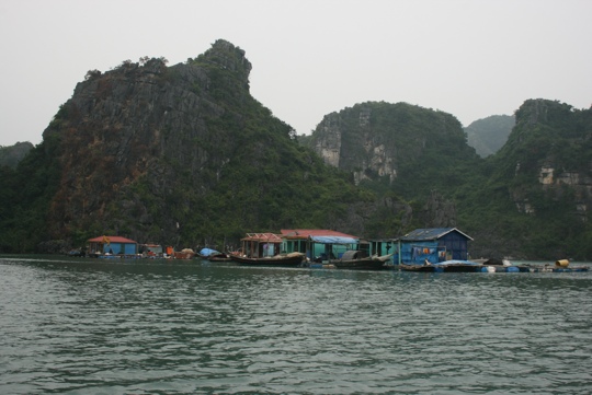 The next day, we were summoned to breakfast for 8am as we effortlessly got underway for our morning excursion – a visit to a floating fishing village and pearl farm. When we arrived, we were ferried to a docking platform before being allocated a local to row us through the floating village, itself situated in a sheltered and almost fully enclosed karst bay. We were told that there were nearly 200 people living in this community and that many of them had never been to the mainland and have grown up living a fisherman’s life, trading their catches for whatever else they needed. It was an intriguing take on an idyllic subsistence lifestyle but one that I’m sure was underpinned by hardship. After a brief stop to see the local floating school, and an obligatory attempt to be extorted by the tourist gift shop, we rejoined our fishing dinghy and were rowed on through the bay. Being me of course I insisted on taking a turn on the oars to give our local lady a rest, so I donned her traditional bamboo conical hat and rowed us on for a bit. After a half-hearted attempt to engage the other rowers into a race, and before I was utterly humiliated by being overtaken by what must have been the Vietnamese teenage Olympic rowing champion in the making, our lady wished to regain the helm and guide us back to the landing platform. She probably just wanted to save face with her peers rather than watch me snake us haphazardly towards the dock like some drunken sailor.