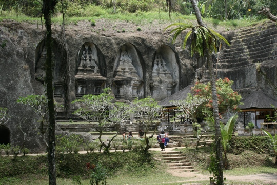 Ubud was quite an assault on the senses after the quiet of the previous few days in Lombok and Gili T. There were other tourists everywhere, traffic snarled the roads, “Taxi, Taxi” was shouted at us at every other step, ticket sellers pressed leaflets into our hands, and there were shops, shops and more shops. Fortunately there were also ancient temples, luscious green rice paddies and stunning gorge views to be discovered. And of course there were a couple of lovely hotels that Clive had organised which were just the place to retreat to after a sweaty day of sightseeing. I liked the feel of Ubud, even though it’s the most touristy place that we’ve visited so far. Somehow the multiple outposts of Paul Smith shops and the like are balanced out by the more authentic Indonesian chaos that surrounds them and keeps Ubud just this side of cheesy.