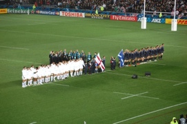Our first games were South Africa v Samoa followed by England v Scotland the next day. One match was closely fought, a joy to watch featuring open running rugby and for 60 mins at least an exhilarating contest of rambunctious rugby. The other was England laboring to a fortunate last minute win over the “Auld” enemy. Don’t get me wrong it was great to see our boys in action but they gave us scarcely little to shout about and the chants of Swing Low were easily drowned out by the Scottish fans baying for a big upset. Of course being NZ all the locals were vociferous in their support for Scotland – pom bashing being a favorite pastime after supporting the All Blacks. Still we scraped through and a win is a win at the World Cup and I was more than consoled about our poor performance by the fact that we put Scotland on the plane home, few things in life are more satisfying than beating the Scots!